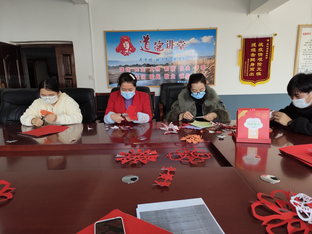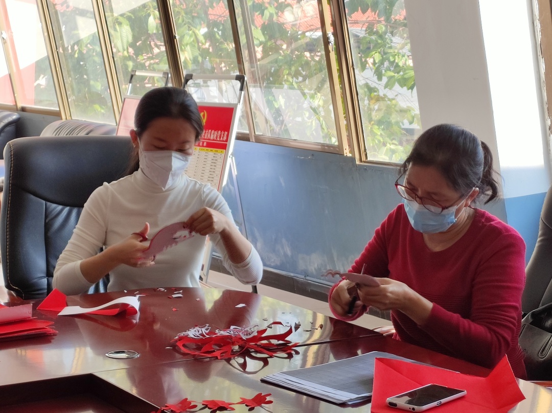为弘扬中华民族优秀传统文化,营造欢乐祥和、喜庆热烈、文明进步的节日氛围,丰富干部职工的文化生活,2023年1月17日,盈江农场社区新时代文明实践所组织干部职工开展“巧手剪窗花,快乐迎新春”文明实践活动,喜迎兔年的到来。