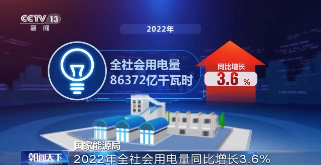 国家能源局昨天(18日)发布数据,2022年,全社会用电量86372亿千瓦时,同比增长3.6%。分产业看,第一、二、三产业用电量同比分别增长10.4%、1.2%和4.4%,城乡居民生活用电量同比增长13.8%。