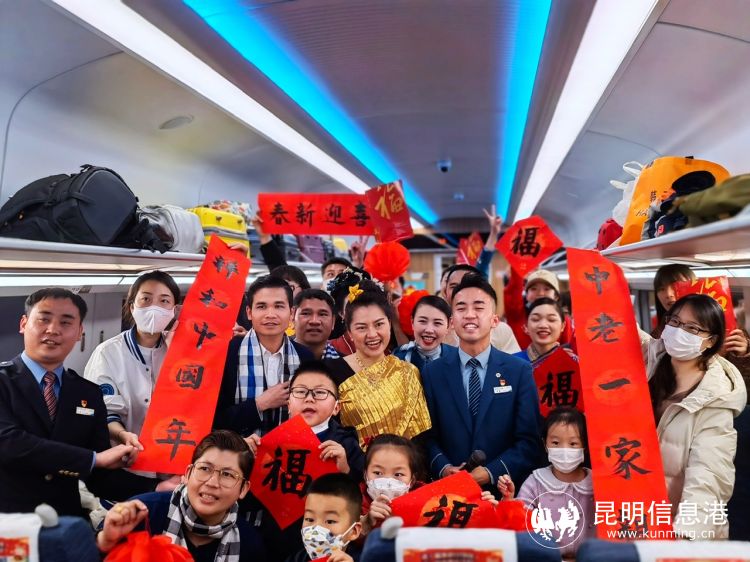 昆明信息港讯 记者上官艳君 “长空雁,雁儿飞,哎呀雁儿呀……”1月19日,在昆明至西双版纳的C272次动车车厢内笑声欢快、掌声迭起,一场以“中老一家亲,祥和中国年”为主题的中老铁路“列车春晚”拉开帷幕。