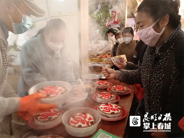 做好的“福”字年糕,看上去喜庆诱人,咬一口软糯香甜。张先生是大理喜洲人,在西山区和平农贸海鲜综合市场卖喜洲粑粑、年糕已有8年。每年春节前,他家的年糕都成了“抢手货。