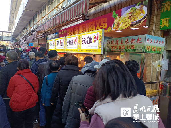 热腾腾的“烟火气” ,红火火的好日子。昆明各超市店内均开辟了“年货街”,超市内除兔年吉祥物、红灯笼、春联、福字等年货外,糖果、干货、酒水等年货都摆在显眼位置,米、面、油等产品一应俱全。不时有工作人员推着购物车补货,前来置办年货的市民络绎不绝,节日市场呈现出一派购销两旺的喜人形势。