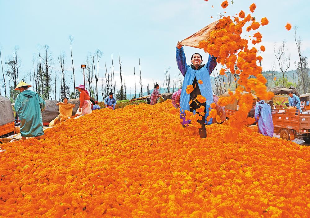 弥勒市东山镇安产村喜迎丰收(供图)