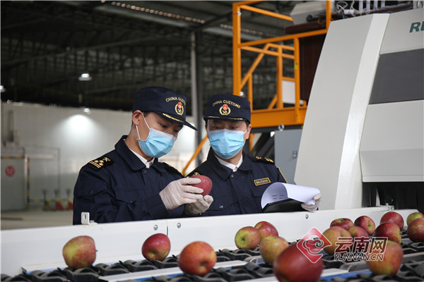 海关关员对出口苹果开展现场检验 李易霖/摄