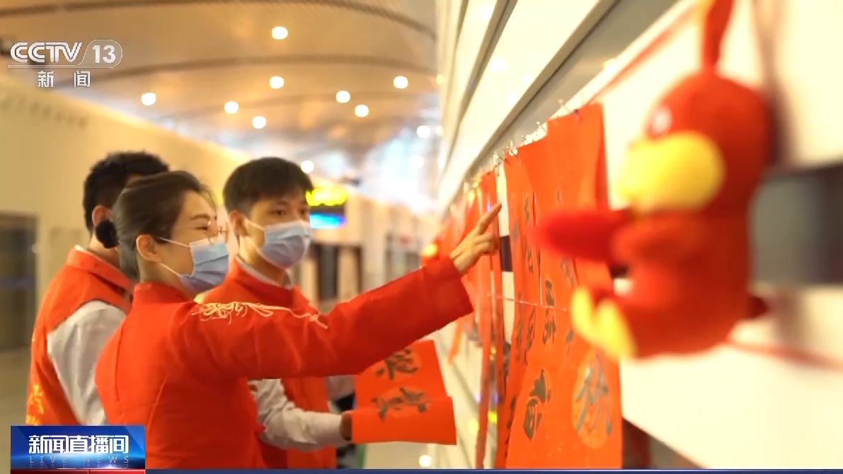 1月18日,广西南宁吴圩国际机场迎来节前首个出行小高峰,预计18日至20日三天将发送旅客超12万人次。记者在出发大厅看到,现场正在写对联、送福字,年味满满,机场还开展了特殊旅客精准帮扶,完善无成人陪伴的儿童和老人旅客的服务流程。