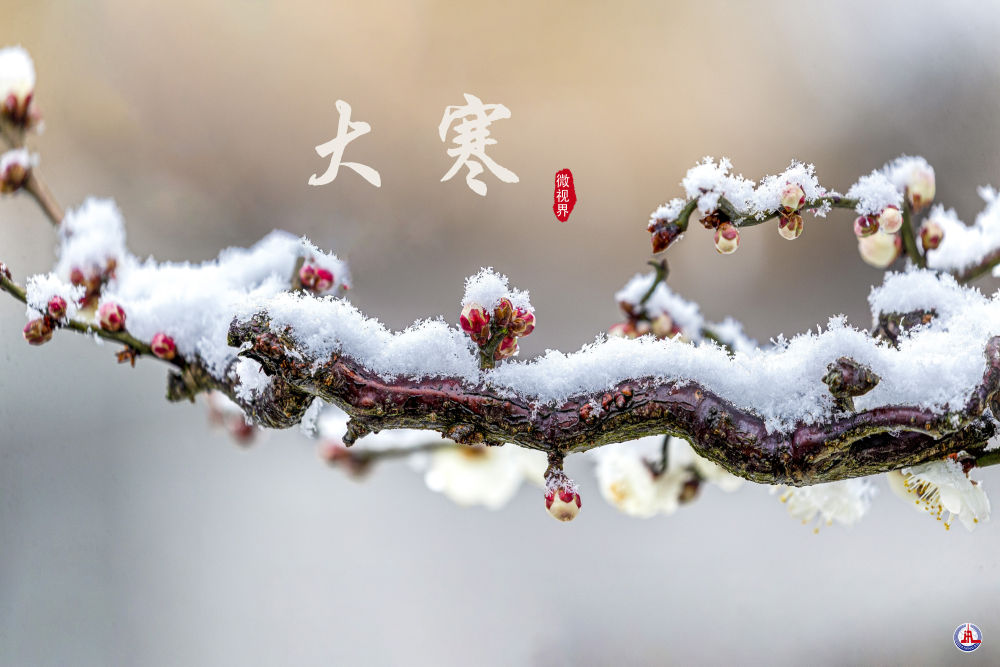 ↑湖北省宣恩县珠山镇,梅花被雪覆盖。新华社发(宋文 摄)