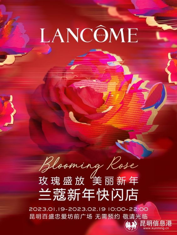 昆明信息港讯 记者李金梓 玫瑰盛放,美丽新年,兰蔻新年快闪店携美好祝福惊艳亮相。1月19日—2月19日,兰蔻新年快闪店限时亮相昆明百盛忠爱坊,欢迎广大市民网友一起共贺佳节,共享美运。