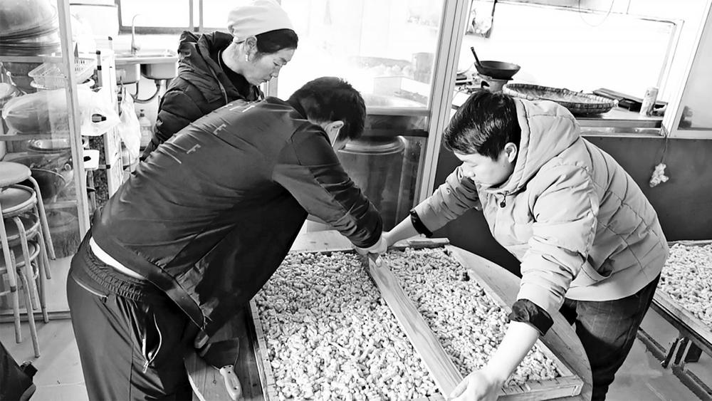 家住苍山西镇密场村的杨红美,今年57岁,在她的记忆里,从小就跟随母亲学做米花和馓子。“小时候,每到过年前,邻里都会邀约,你家拼锅、我家拼柴,架起锅、生起火,分工有序地炒米花、炸馓子。” 杨红美介绍,那时候都是一部分自家享用,一部分送给亲戚朋友。后来在亲人的鼓励下,她开始拿到街上售卖,这生意一做就是30多年。