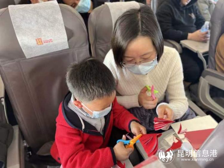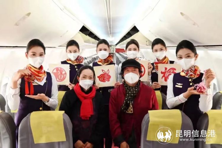 “新春·云上非遗”主题航班活动,昆明市文旅局组织了非遗传承人,把剪纸、昆明瓦猫、掐丝珐琅彩画、十里香茶制作技艺、安宁手工香制作技艺、斑铜制作技艺等与春节有关的昆明非遗项目带上航班,与旅客们一起剪窗花、贴福字、品糕点、饮香茶、送吉祥,通过互动体验,可谓让旅客们五感神游彩云之南,周身纵览春城之美。活动中,昆明“剪纸伉俪”汪元、段云丽2位非遗传承人将跟随航班,带着旅客们一起剪窗花,营造“窗花既出,福倒登临”的节日氛围。