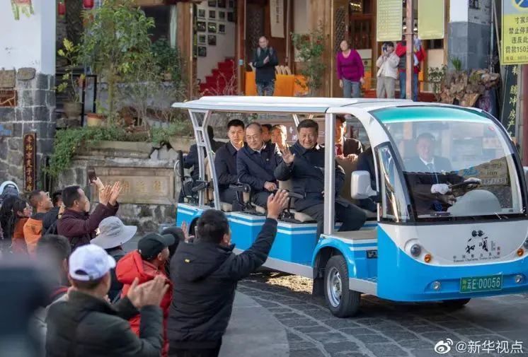 沿途游客看到总书记,热情簇拥上来。总书记同他们亲切打招呼,询问大家都来自哪里?在七彩云南走了哪些地方?有游客问:“习大大,彭麻麻呢?”总书记笑着回答说:“没来。过年了都在家里忙着呢!”大家都会心笑了起来。古镇里暖意融融,笑声阵阵。