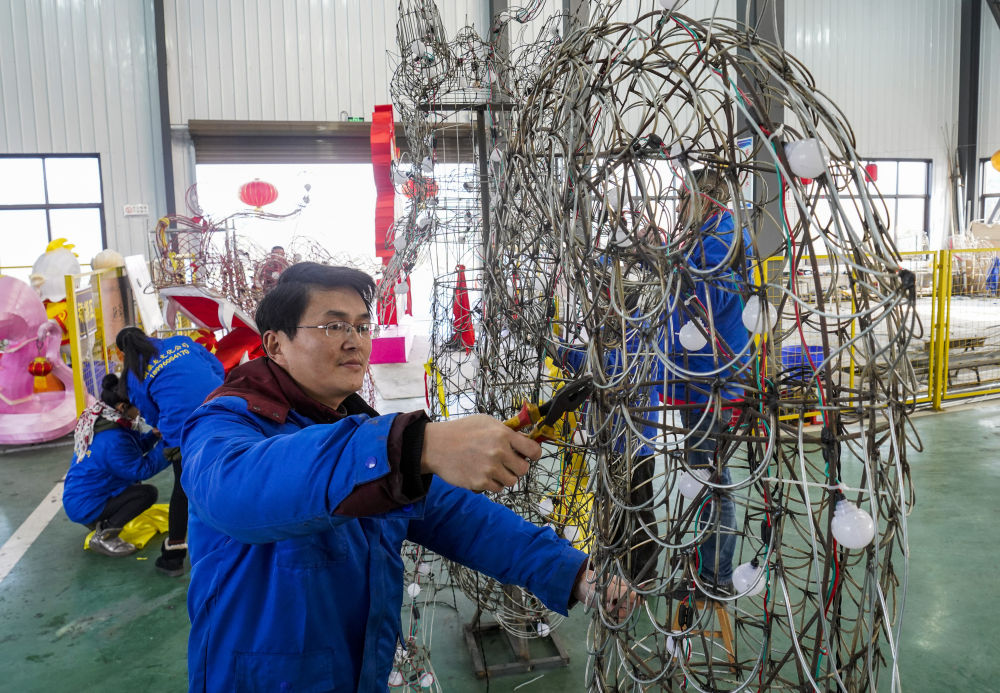 1月19日,在重庆市铜梁区太平镇坪漆村龙灯彩扎基地的乡村振兴车间内,几名村民制作铜梁龙灯。
