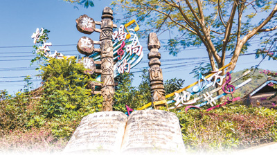 老达保村口的乐谱雕塑。虎遵会摄(人民视觉)