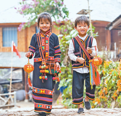 身穿拉祜族特色服饰的孩子们。虎遵会摄(人民视觉)