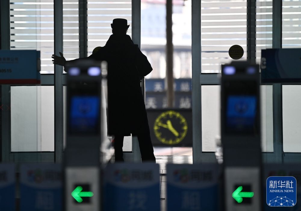 1月21日,在铁路天津站,客运值班员准备开始检票。新华社记者 李然 摄