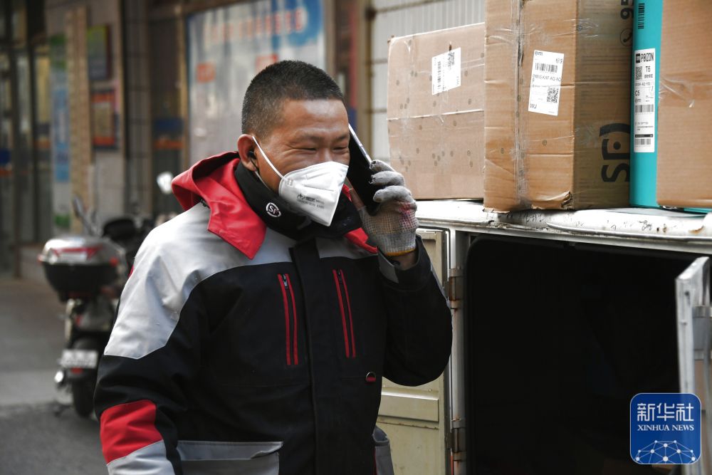 1月21日,顺丰速运快递员杨敬山在北京市海淀区中关村街道希格玛社区准备为社区居民送快件。新华社记者 任超 摄