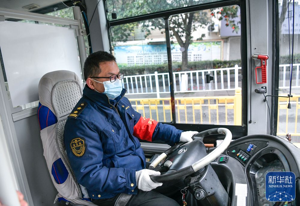 1月21日,在贵州省贵阳市云岩区新添大道,25路公交车司机驾驶公交车行驶在路上。新华社记者 杨文斌 摄