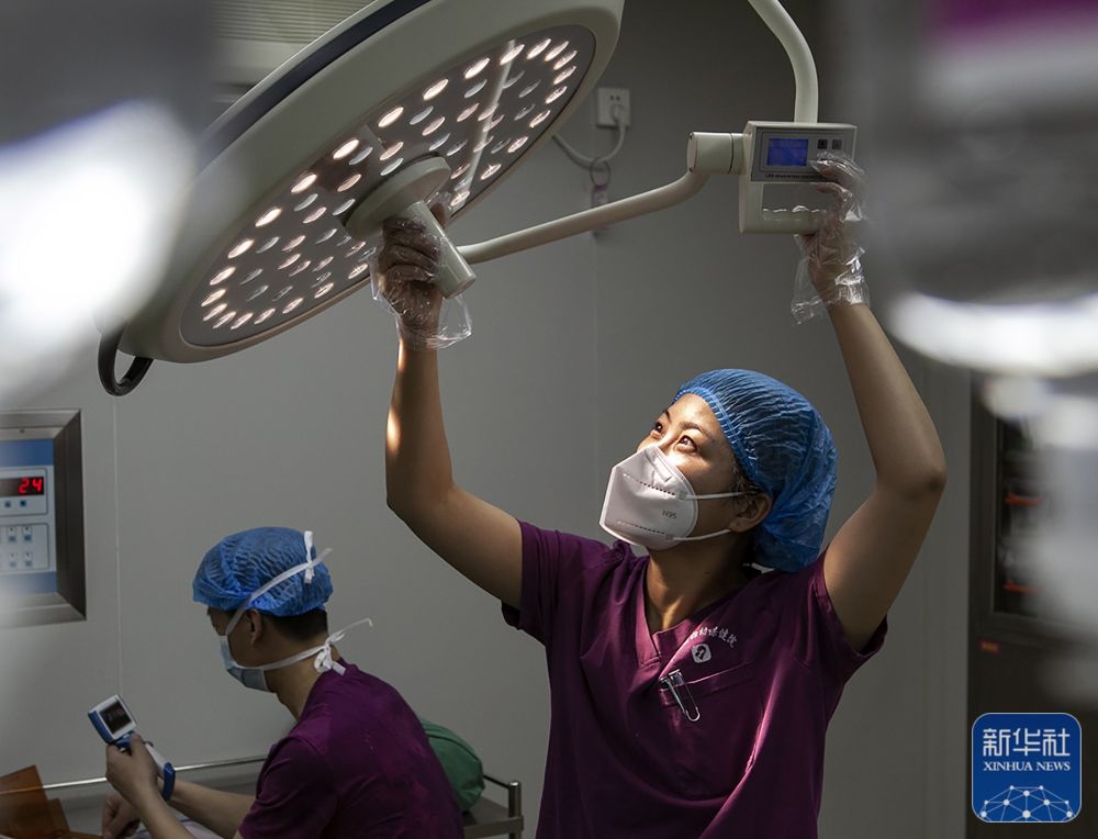 1月21日,河南省焦作市博爱县妇幼保健院的医护人员在手术室进行术前准备。新华社发(程全摄)