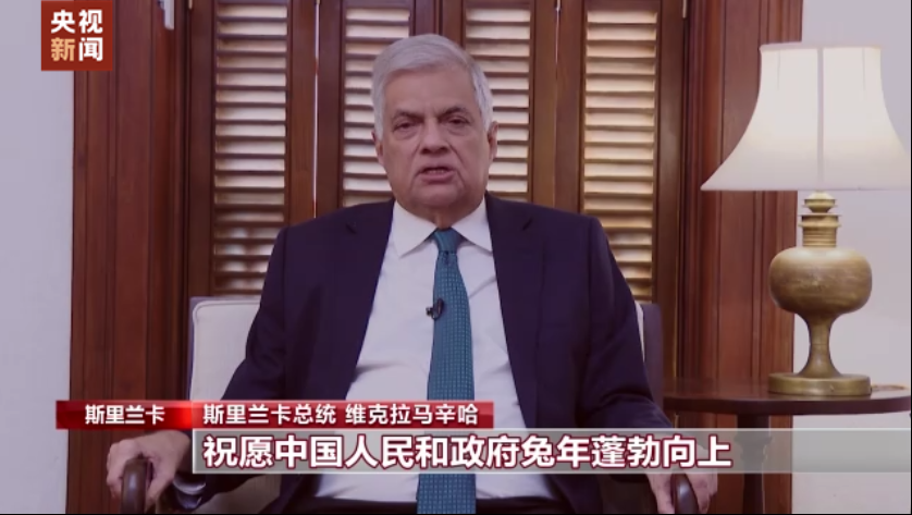 斯里兰卡总统 维克拉马辛哈:世界各地的华人庆祝都会庆祝春节,让春节成了全球性的盛会,我想借此机会祝愿中国人民和政府兔年蓬勃向上。