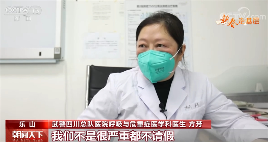 武警四川总队医院呼吸与危重症医学科医生 方芳:我们呼吸专业是打主力的,我们不是很严重都不请假,最多实在不行就休息两天。能扛还是要扛住的,要有一种打仗要打赢的信念。