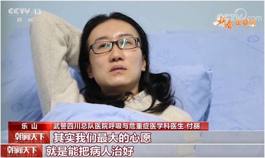 武警四川总队医院呼吸与危重症医学科医生 付丽:大家也就是靠着一股精神、一股毅力坚持到现在,说实话,其实当时我觉得我倒下了都怕把大家这股绷着的这个弦一下就在我这里崩断了,所以我想赶快早一点好了,回来上班。