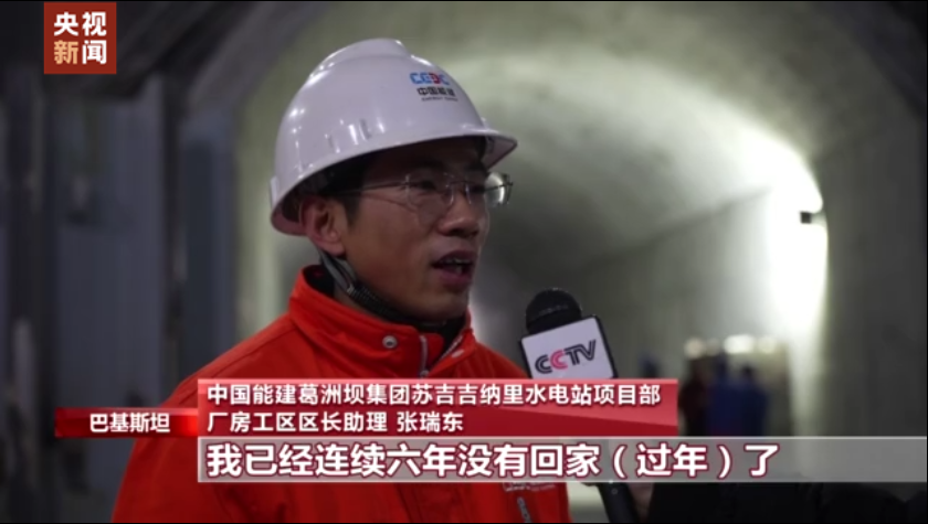 中国能建葛洲坝集团苏吉吉纳里水电站项目部厂房工区区长助理 张瑞东:在巴基斯坦,我已经连续六年没有回家过年了。