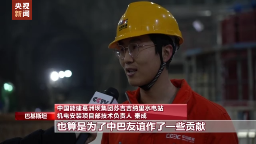 中国能建葛洲坝集团苏吉吉纳里水电站机电安装项目部工程管理部技术负责人 秦成:我们在这里也算是为了中巴友谊作了一些贡献,作为一个中国人,我也是蛮骄傲的。