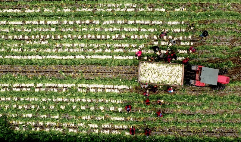 △近年来,四川省眉山市青神县推广冬季蔬菜生产,为当地农民增收致富拓宽渠道。图为青神县青竹街道沙河村村民在采收萝卜(2023年1月8日摄)。