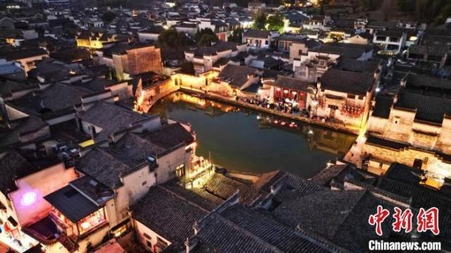 黄山市民宿群之一黟县宏村夜景。 方龙 摄