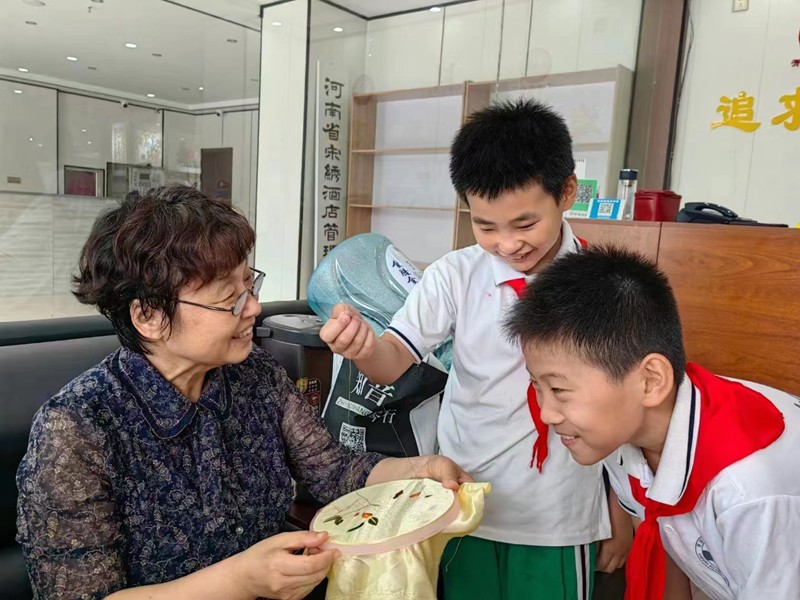 无论是走进中小学生的课堂,抑或是高中生、大学生的调研采访,只要联系到程曼萍,她都积极为他们讲解汴绣。在程曼萍看来,这些来访者都是汴绣潜在的接班人,都是汴绣传承的重要力量。“只有让年轻人、孩子们了解汴绣,喜欢汴绣,汴绣艺术才不会有断代的可能,才能代代相传下去。”程曼萍说。