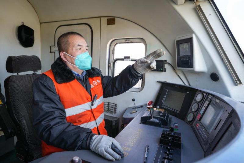 “塔黄旗东站,71404次列车接近。”50岁的司机吕鸿勋通过对讲机联系车站,这是他第21次在春节假期值班。