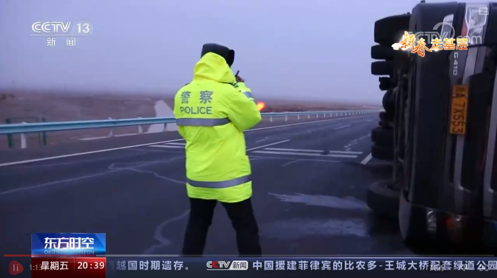 央视网消息:新疆三十里风区位于G30连霍高速公路三个泉至小草湖段,这里是南北疆出入疆的必经之路,由于处在天山山脉的一个豁口处,地势由高到低,冷空气从这里突破天山防线后就会顺势带来大风,三十里风区也因此得名。春节前,这里又刮起了10级以上大风,不少赶着回家过年的人因此滞留,为了确保他们的安全,新疆吐鲁番市托克逊县公安局交警大队小草湖中队的交警连夜上路处理事故、疏导被困人员。1月20日的《新春走基层》,我们就跟随记者一起去新疆托克逊县的三十里风区看一看,体验一下15级大风天里的救援。