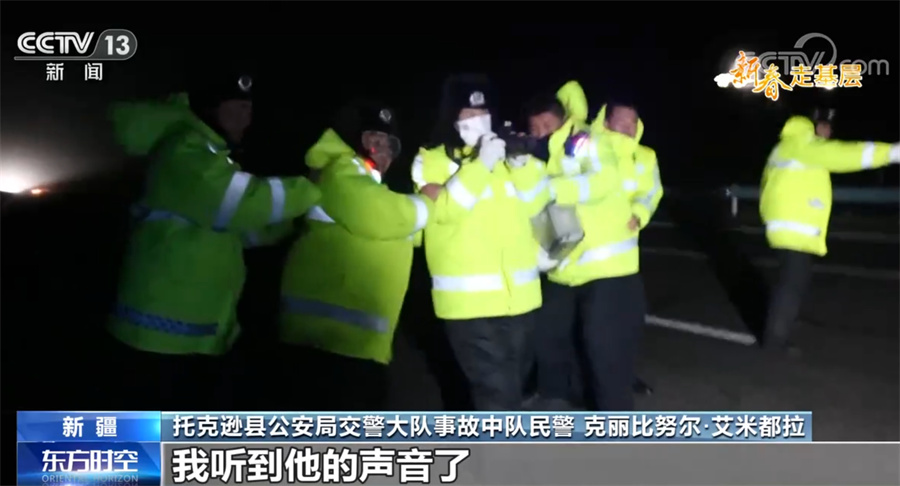 托克逊县公安局交警大队事故中队民警 克丽比努尔·艾米都拉:我听到他的声音了,好久没见他了,有点激动,看到他的辛苦,心里有点难过,他平时也是这样,哪有困难就去一线。