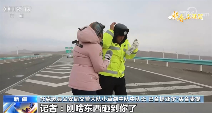 托克逊县公安局交警大队小草湖中队交警 周正闯:这边天气太冷了,没办法这个。