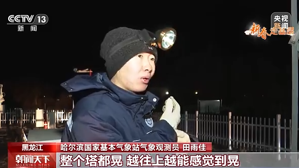 哈尔滨国家基本气象站气象观测员 田雨佳:温度低,上面有冰,一融化,风杯就被冻死了。首先要转,另外它要灵敏,就是转得要非常顺滑,整个塔都晃,越往上越能感觉到晃。