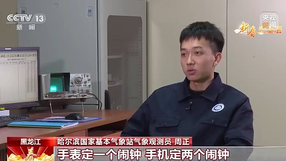 哈尔滨国家基本气象站气象观测员 孟祥龙:可能值班起来感觉有点枯燥,就是天天干活,基本上差不多的,但是现在感觉就像生活的一部分了。