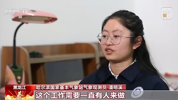 哈尔滨国家基本气象站气象观测员 潘明溪:气象局天气预报只是一部分工作,更大部分的工作是这些基础类的观测项目,就是我们身上是担负一些责任的,这个工作需要有人一直来做,而且需要有人把它越做越好,可能就是大家说的传承。