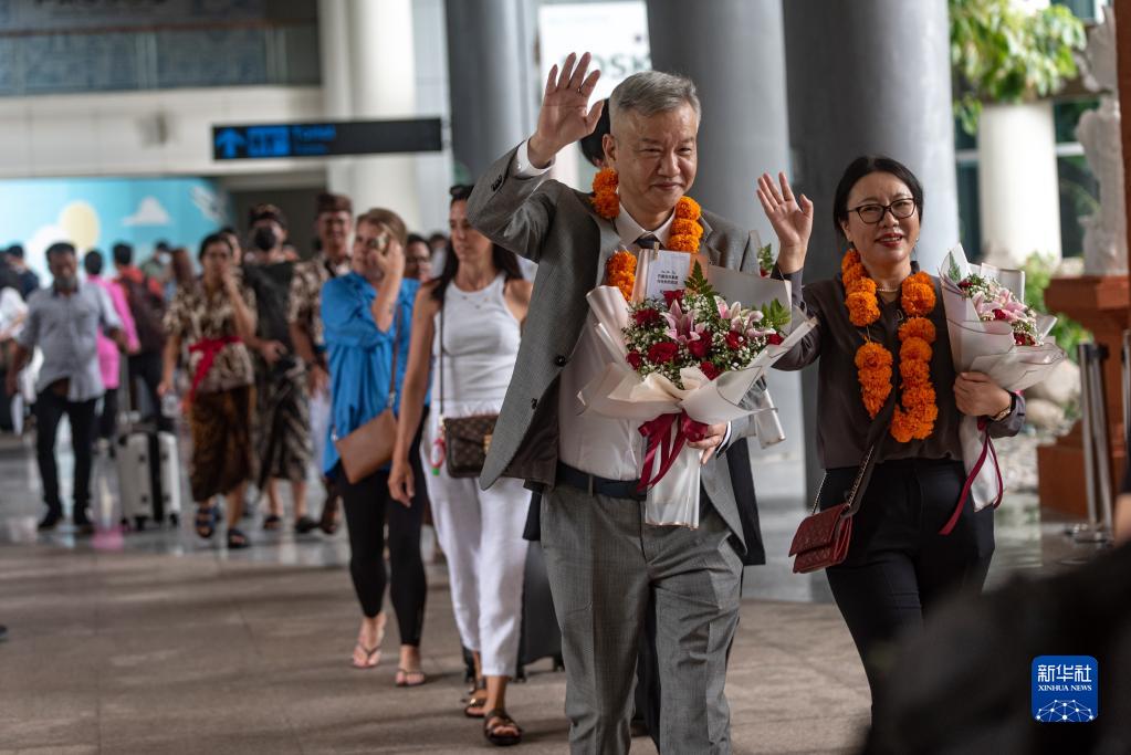 新华社印度尼西亚巴厘岛1月22日电 记者余谦梁 印度尼西亚旅游部和巴厘岛省政府22日上午举行仪式,欢迎2023年首个中国游客包机从深圳抵达巴厘岛。