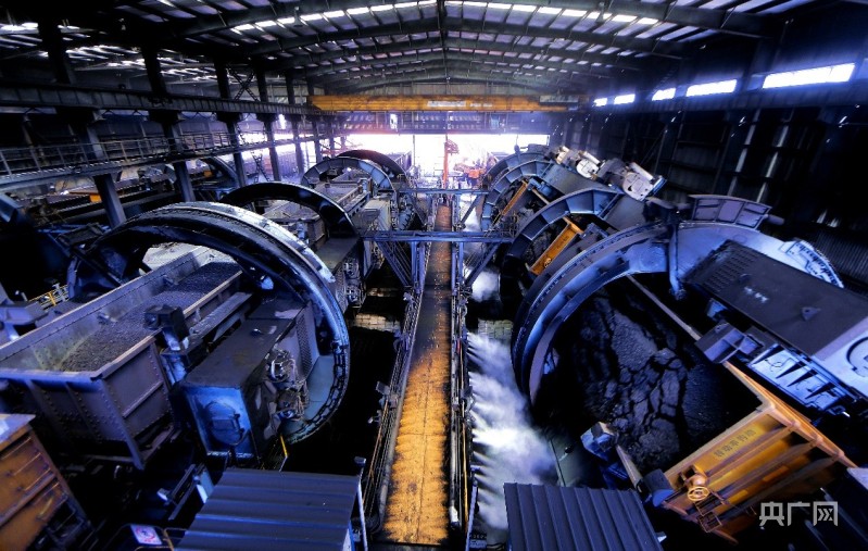 1月的秦皇岛港,大秦铁路运来的一车车动力煤陆续到达卸车机房,通过自动化卸车系统,每三节车厢一组,向侧面翻转大约150°,黑色的煤炭倒进下层的传送带上。