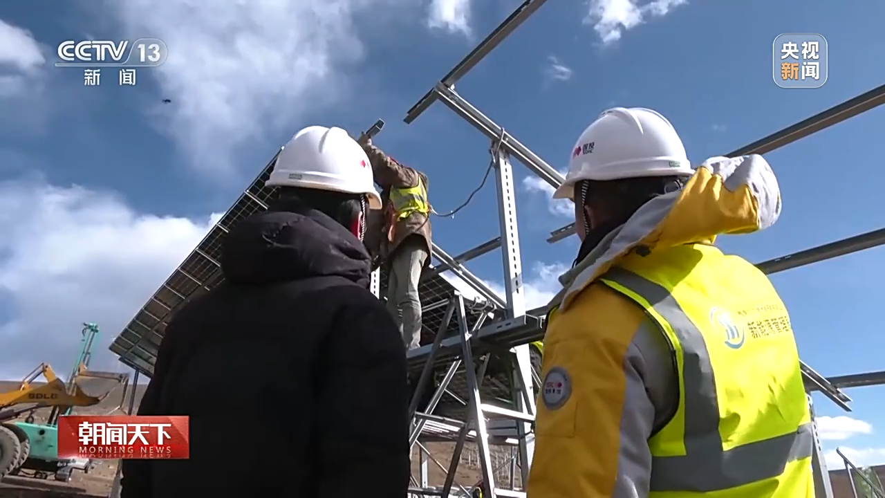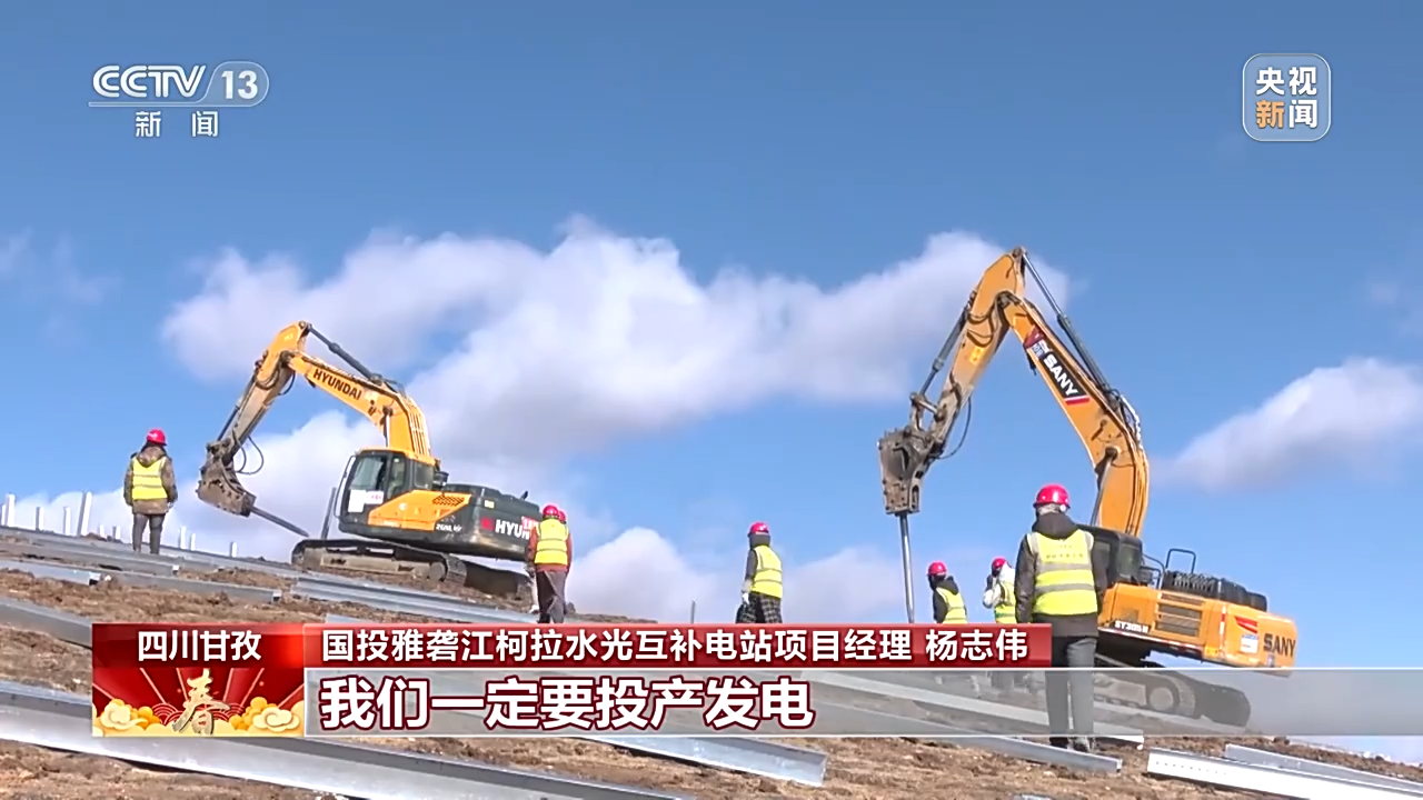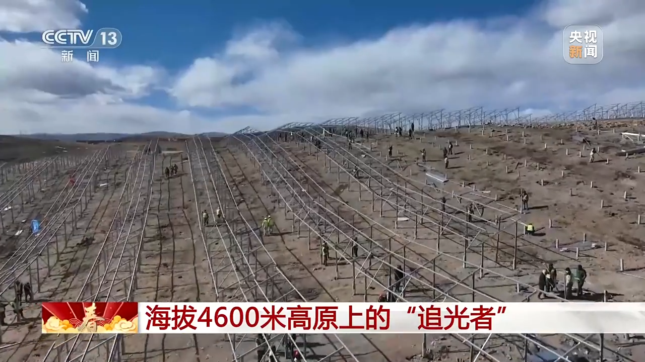 总台央视记者 古峻岭:在海拔4600米的柯拉水电光伏互补电站,1000多名建设者正在加紧施工,他们要在春节期间把53万根光伏基础桩全部施工完成。
