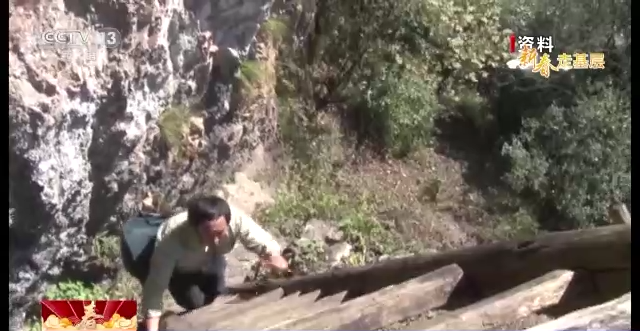 过去,这里交通不便,老杜只能步行投递邮件,50多公里的山路往返一次就得5天。最危险的路段甚至要攀爬悬崖。每周,老杜都要背着邮包,攀爬“天梯”送快递。