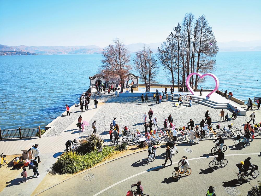 艳阳下,一眼望不到头的两条车龙从双廊古镇向两侧的环海公路蜿蜒伸展,贯穿古镇南北的民族文化街上人潮涌动。“双廊恢复了几年前的热闹景象。”正在大理市双廊镇渔文化广场提供志愿服务的镇政府工作人员张妹告诉记者。