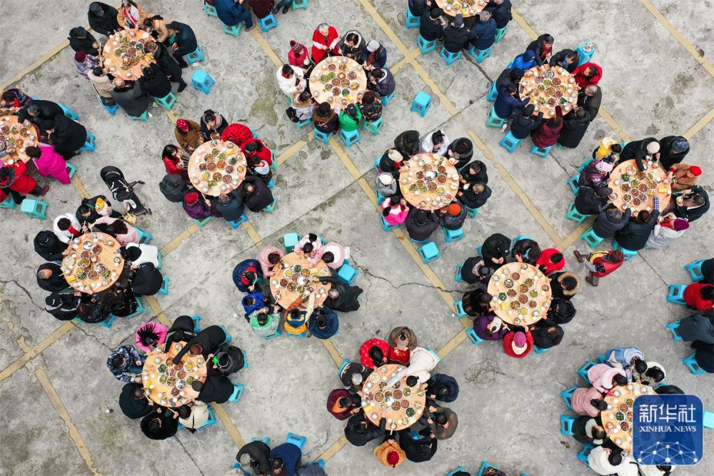 1月26日,四川省泸州市江阳区蓝田街道宪桥社区居民享用“百家宴”。新华社发(刘学懿 摄)