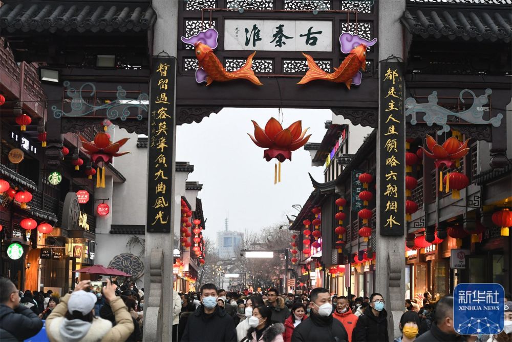 1月26日,人们在南京夫子庙景区休闲游玩。新华社发(杨素平 摄)