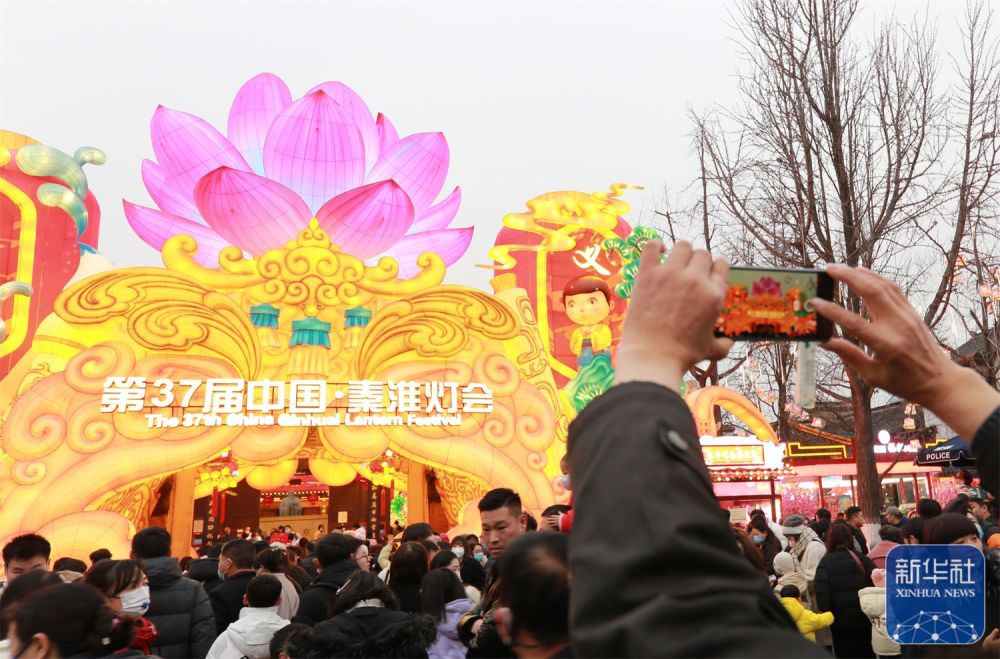 1月26日,游客在南京夫子庙秦淮灯会拍照。新华社发(颜怀峰 摄)