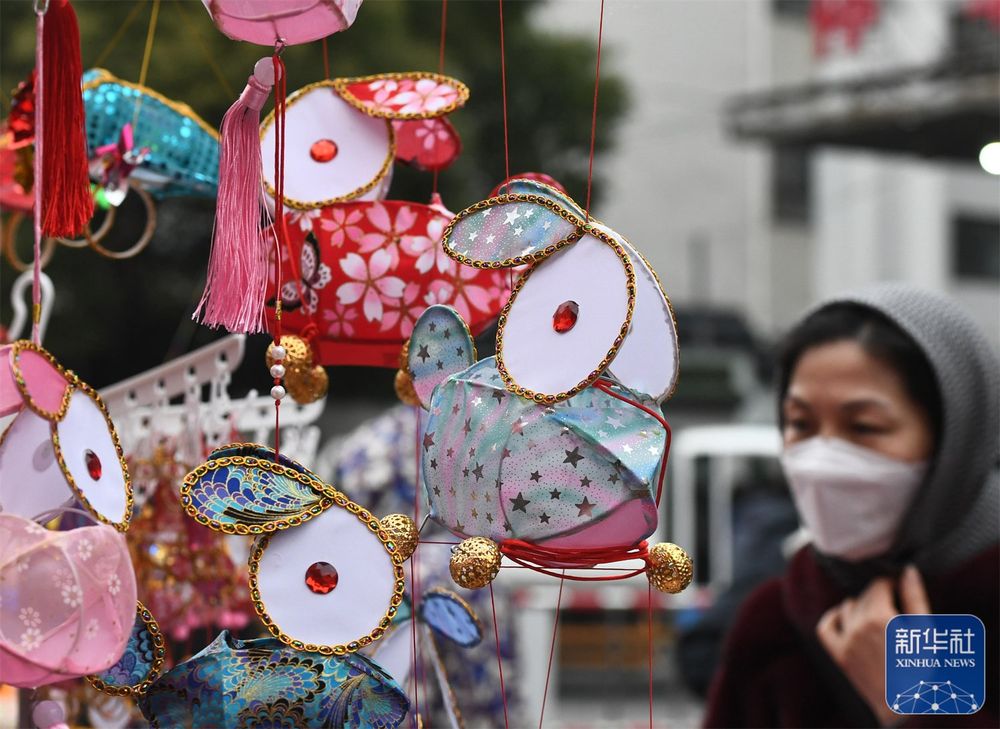 1月26日,游客在南京夫子庙景区选购花灯。新华社发(杨素平 摄)