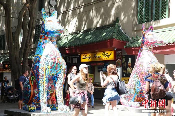 镇守悉尼唐人街的守岁狗花灯。陶社兰 摄