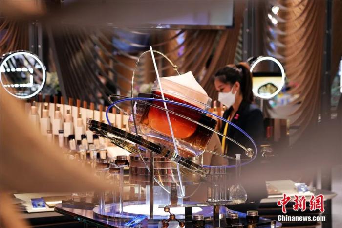 上海进博会雅诗兰黛化妆品展位。汤彦俊 摄