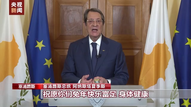 塞浦路斯总统 阿纳斯塔夏季斯:我谨向习近平主席和友好的中国人民,致以最诚挚温暖的新春祝福。祝愿你们兔年快乐富足,身体健康。塞方愿与中方加强在贸易、投资、可持续发展、粮食安全、气候变化、环境保护、教育等各领域的合作。我还要在此重申,塞方坚定奉行一个中国政策,坚定支持中国主权、领土完整和国家统一。
