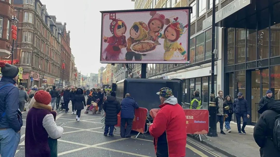 春节期间,总台春晚正片或宣传片首度登陆海外1642块户外大屏和院线银幕,其中欧美国家984块。总台2023年春晚吉祥物“兔圆圆”首次登陆美国纽约、华盛顿、洛杉矶等五大城市772块主流院线的电影屏幕。接地气的祝福直达海外民众,为影院增添了中国春节欢庆吉祥的氛围。