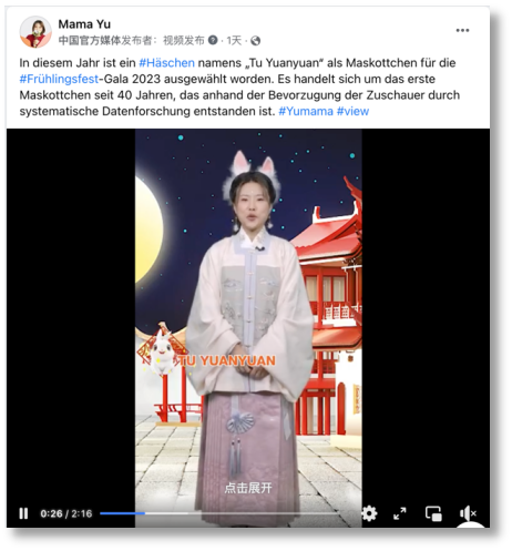 CGTN多语种主持人、主播在社交媒体平台发起《兔子手势舞》线上挑战活动,全球阅读量突破3.4亿。总台40多个语种的近百名主播陆续推出《这是中国每年最火的节目》《小白兔为何登上春晚大舞台》《这份特殊的“年夜饭”,咱们不见不散!》等特色节目,向海外受众重点推介总台春晚精彩内容和中国春节传统文化。