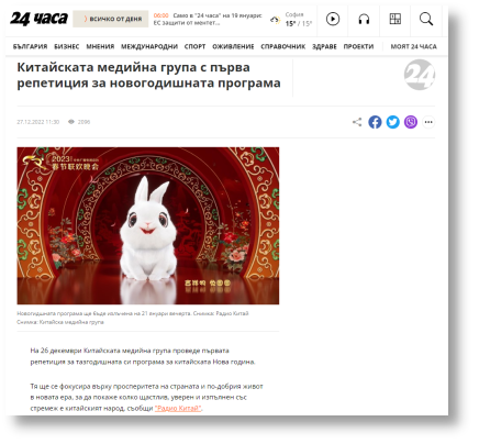 截至1月26日,总台兔年春晚精编版已在俄罗斯大亚洲电视台、今日哈萨克斯坦通讯社、印度尼西亚NTV等30多国主流媒体播出。节目还通过总台搭建的“融媒体定制化服务平台”等多种渠道在全球120多家主流媒体陆续播出。